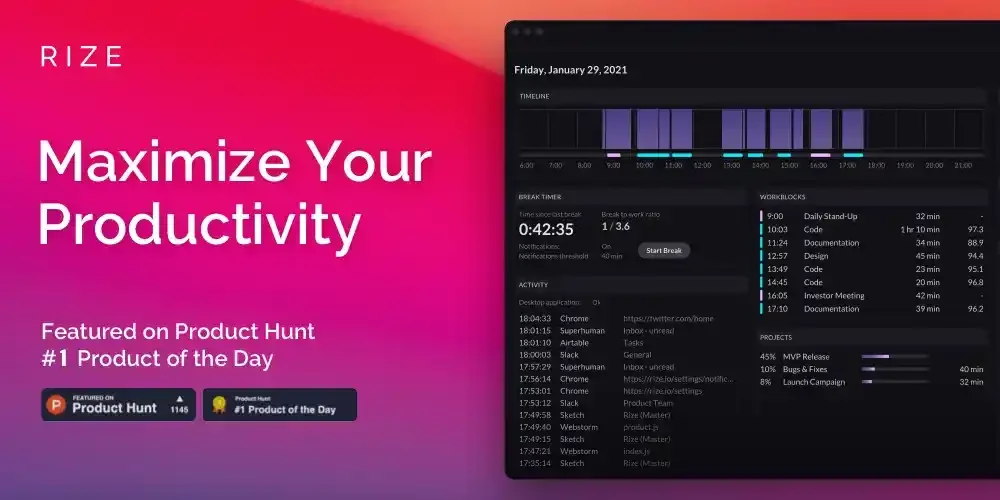 Rize 是一款由 AI 驱动的时间追踪器,可提高你的专注力并养成更好的工作习惯。
