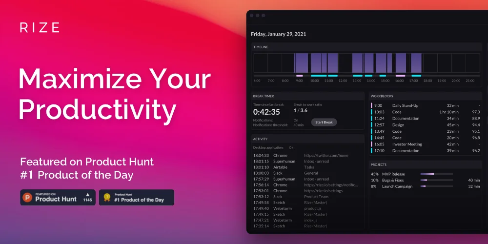 Rize 是一款由 AI 驱动的时间追踪器,可提高你的专注力并养成更好的工作习惯。